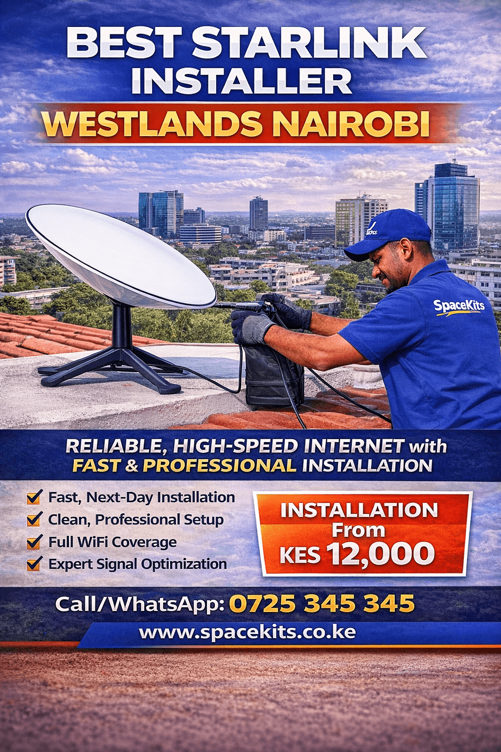 At SpaceKits (spacekits.co.ke), we provide professional Starlink installation services in Westlands, ensuring maximum speed, stability, and full WiFi coverage.